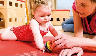 Door al op babyleeftijd samen met je kindje te bewegen, het op te pakken en neer te leggen via buiklig, het te laten spelen in buiklig, ook op de buik op je onderarm of in buiklig liggen op je eigen borst, stimuleer je de motorische ontwikkeling van je kindje.